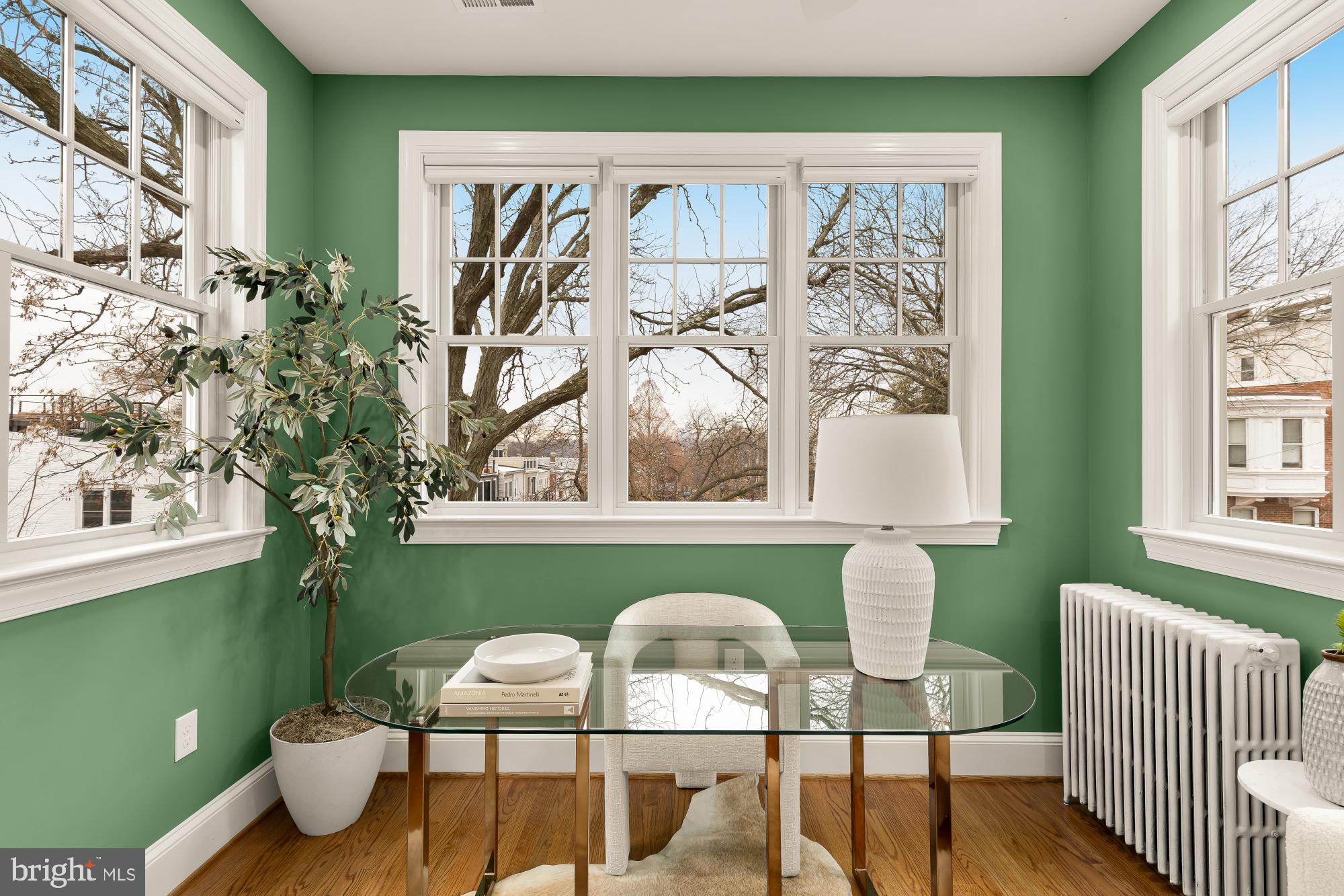 Welcome to this owner-renovated 4 bedroom, 3.5 bathroom gem with light-filled rooms and two bonus dens in the heart of coveted Mount Pleasant. This stunning rowhome represents the perfect mix of modern updates and historic charm and boasts an estimated 2,550 square feet spread over three thoughtfully configured levels. From its fully restored historic front porch and beautiful front yard garden showcasing native plants, to the hardwood floors, open-concept kitchen, and deep backyard boasting two parking spots and views of the National Cathedral, this one truly has it all.